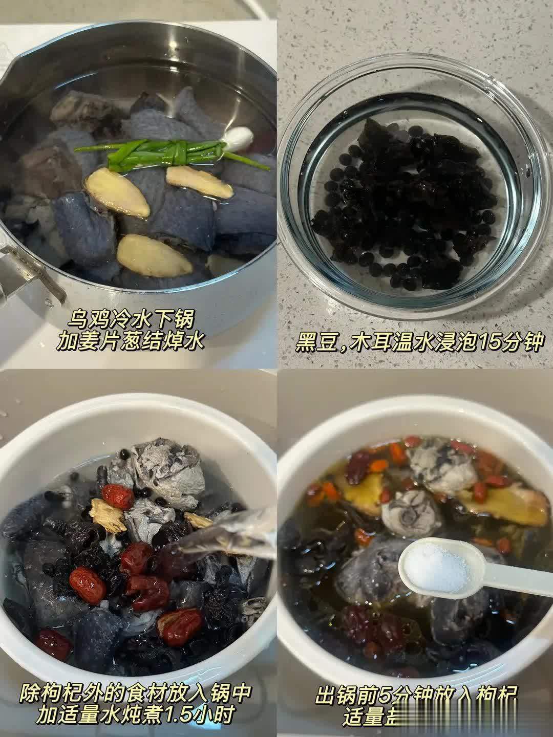 食材处理小技巧:木耳泡发时加一勺面粉,轻轻搓几下,藏在褶皱里的脏东西就全出来了,泡好后别久放,当天用最新鲜;乌鸡切块后用温水冲一遍,去掉表面血沫,炖出来的汤更清亮。