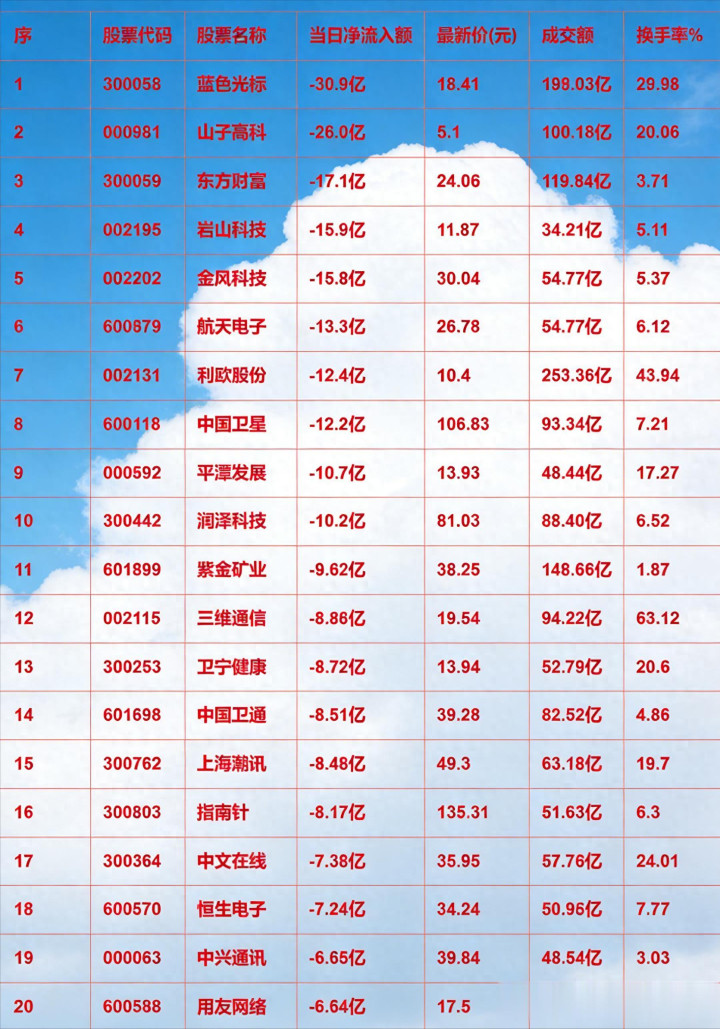 当日净流入额