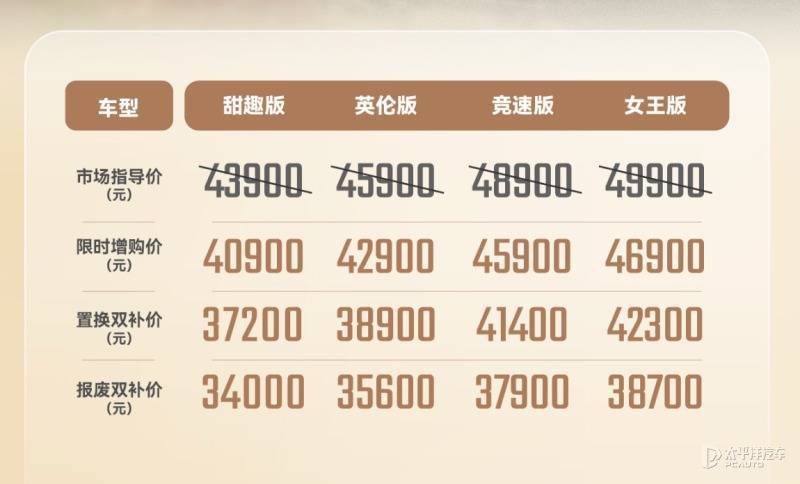 这个级别的纯电代步小车颜值会是吸引广大消费者首要卖点,因此可以看到同级的产品都在设计上下了不少功夫。本次26款奇瑞QQ冰淇淋直接推出两副外观,其中女王版主打英伦设计风格,主要吸引女生。而竞速版拥有熏黑涂装