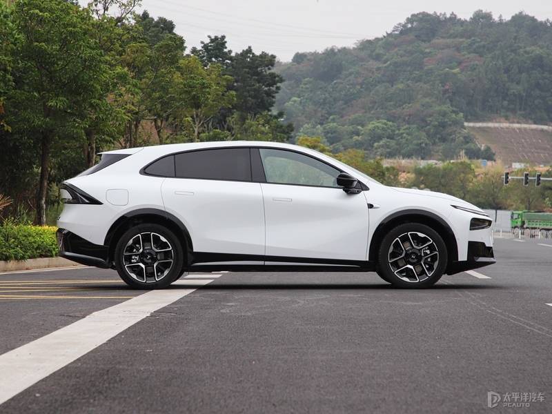 车身侧面,采用轿跑式车身造型,配备隐藏式门把手,以降低空气阻力。